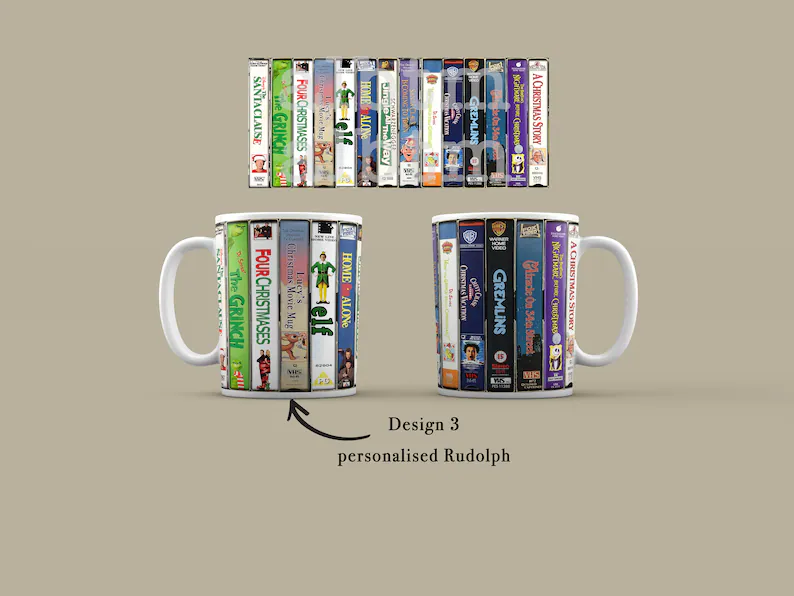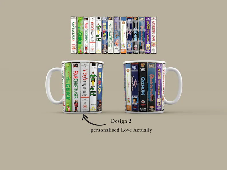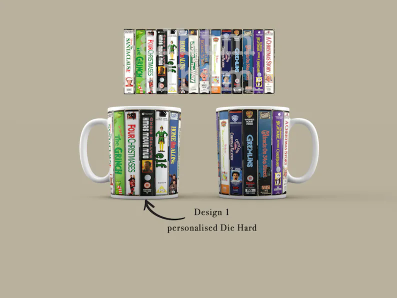 VHS Christmas classic films movie mug. 4 designs to choose from (3 of the designs can be personalised)